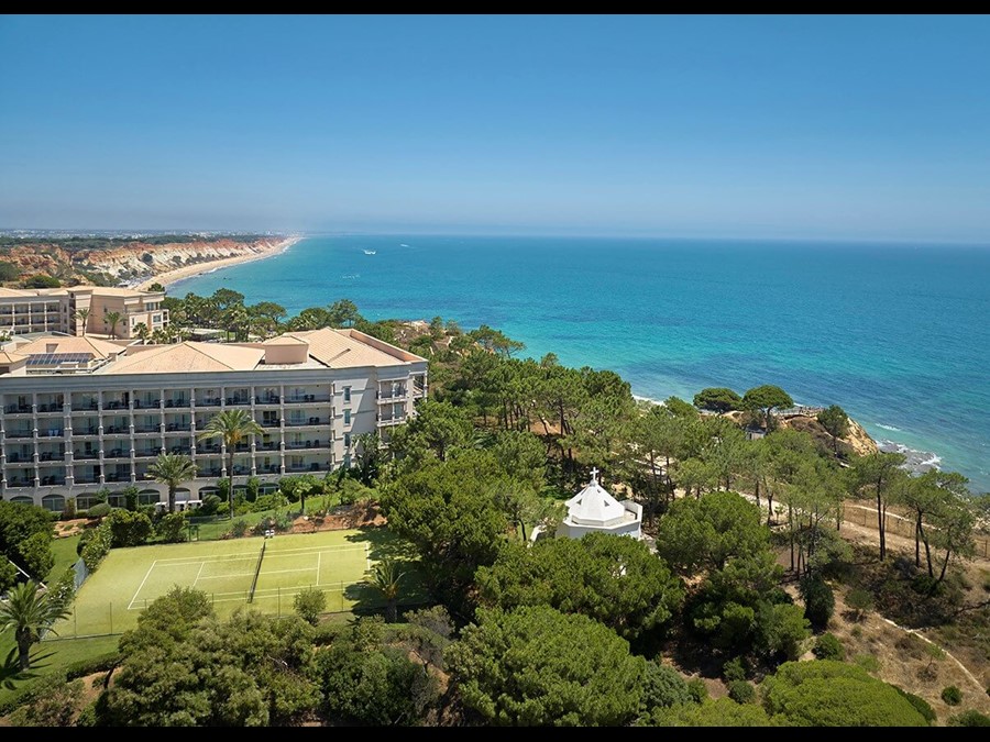 Surrounded by large green areas, the hotel overlooks one of the most beautiful beaches in the world, Praia da Falésia, in the Algarve. The spacious rooms have private balconies.