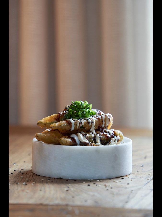 Atum, vieiras ou frutas da ilha da Madeira juntam-se ao wagyu japonês, nori ou yuzu. Os produtos da estação ganham destaque numa cozinha onde se prepara sushi e sashimi com peixes da ilha.